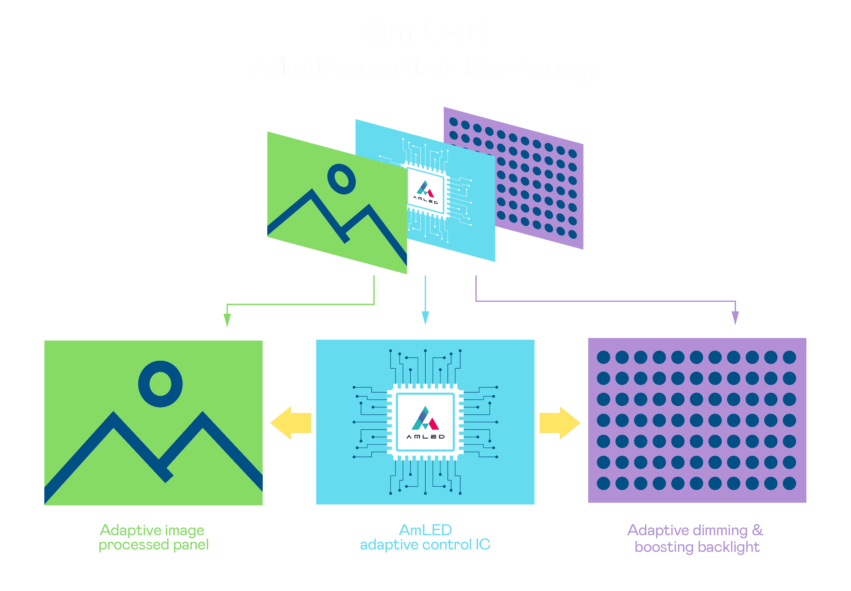 透过动态影像处理和 Mini LED 背光模组的动态对比及峰值亮度调变,,AmLED 显示技术精准细致的局部调光效果达到超过 1,000 nits 的超高亮度表现,,,,亮部更明亮、、、暗处更深邃,,,呈现真实黑色中的亮度以及平滑灰阶,,,打造出具层次分明的精致光影细节。。