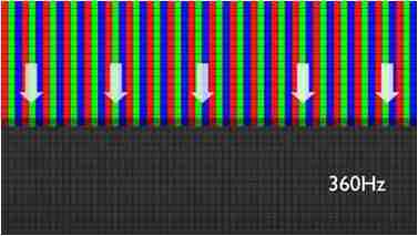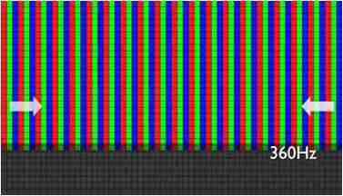 传统液晶驱动是从左到右单向进行,,,在画面更新速度愈来越愈快的情况下,,位于驱动线路末端的右下角区域,,画素的闸极来不及在短时间内获得足够电压,,无法显示出正确的颜色资讯。。。 |