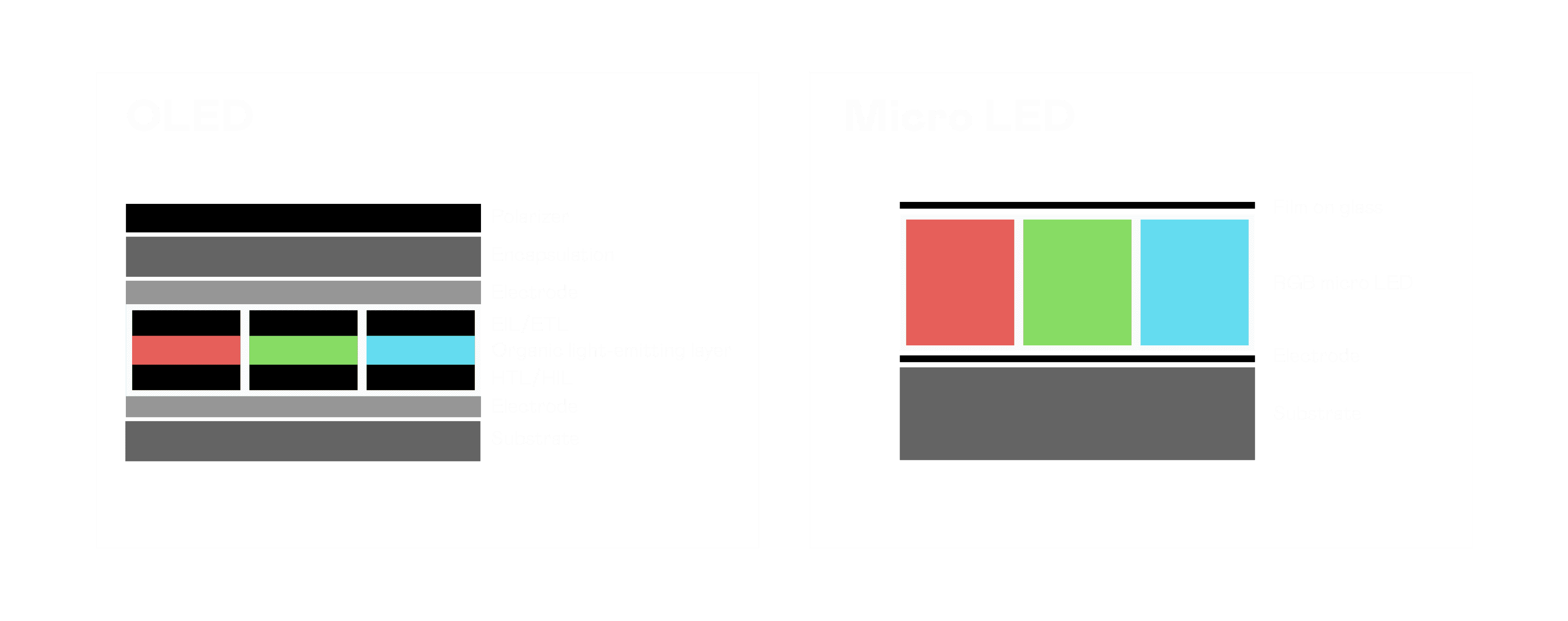 以 LED 做为显示画素,,,可让 LED 的发光效率发挥到极致,,从而让显示器具备优异的亮度表现,,不论是在户外或室内,,均具备出众的显示效果。。。。同时,,,,与使用有机材料的 OLED 相比,,,,LED 具备更稳定、、寿命更长的特性,,不仅不会有画面烙印问题,,,,而且更不容易出现故障、、、坏点。。